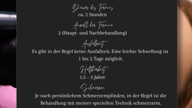 Aufgrund der Technik und modernsten Pigmentiergeräten berichten meine Kundinnen, überhaupt keine Schmerzen verspürt zu haben bzw. über eine äußerst schmerzarme Behandlung.